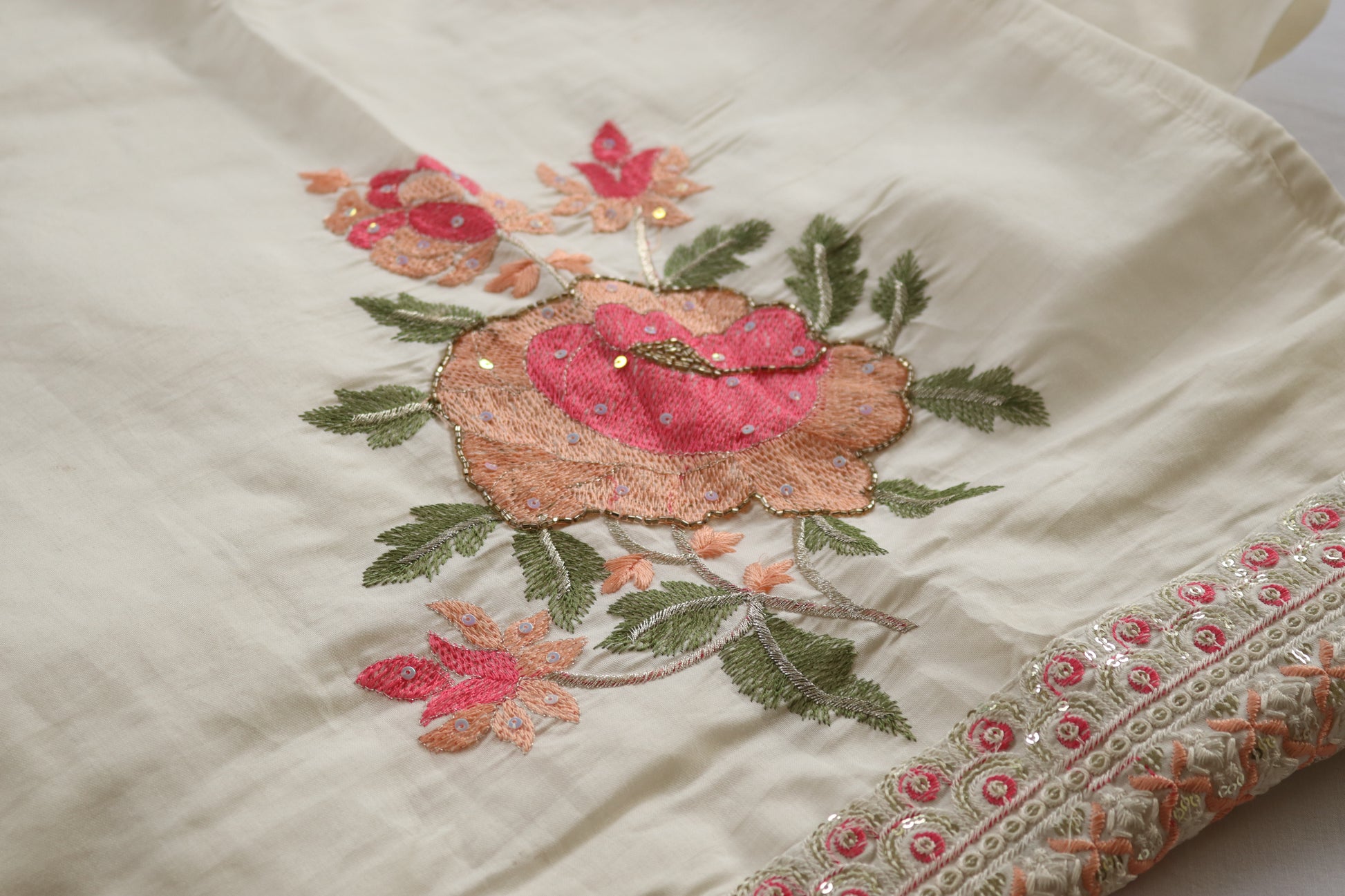 - Subtle floral embroidery on neckline, hem & dupatta
